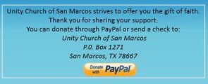 If you are blessed by this message please consider contributing to Unity Church of San Marcos at https://unitychurchofsanmarcos.org/ and scroll to the very bottom of this page.